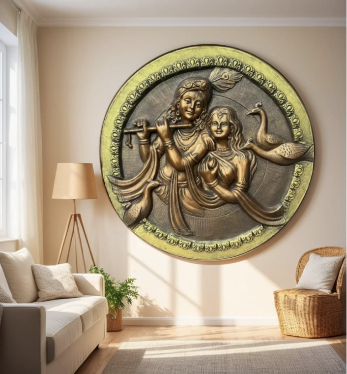 Captivating 3D Relief: Exquisite detailing brings Radha Krishna to life.